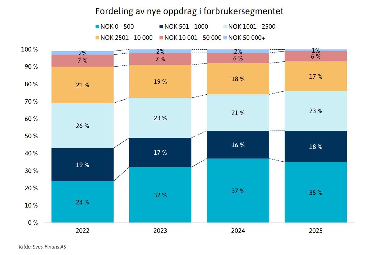 Nye tall fra vår inkassoavdeling viser at stadig flere deler opp regninger på under 2.500 kroner. Dette har ført til en markant oppgang i inkassovarsler, men det trenger ikke alltid å være en dårlig ting.